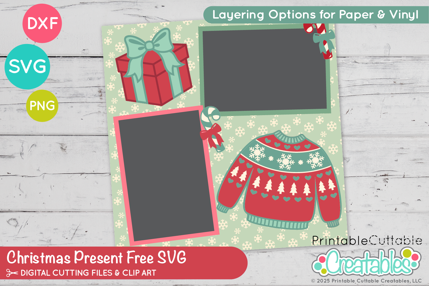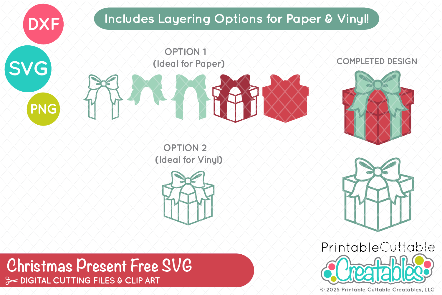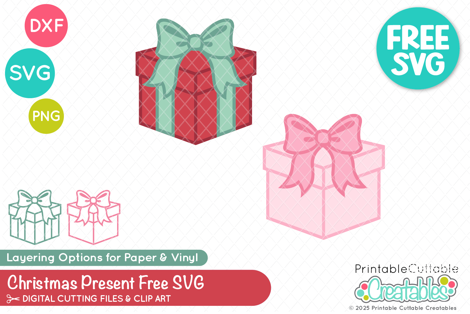 Christmas Present Free SVG File includes a variety of options, so whether you’re paper crafting or working with vinyl & HTV, you’ll have what you need!